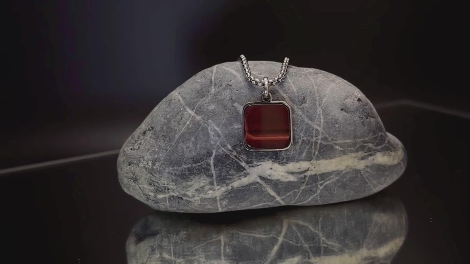 שרשרת עם תליון אבן חן לגבר "Zach" | עין הנמר חום-אדום